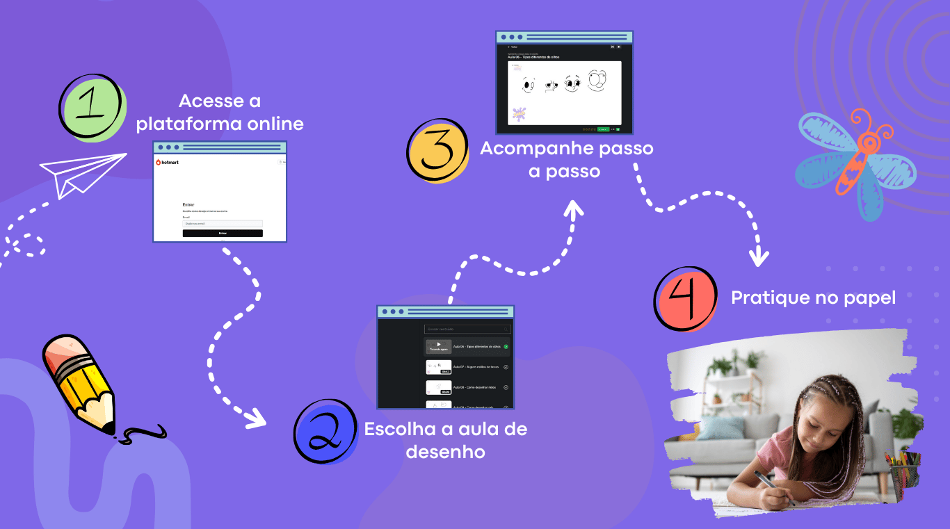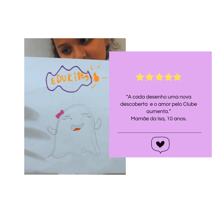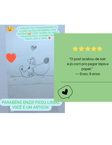 Com o Clube do Desenho Edukids, a criança aprende a desenhar passo a passo, e isso cria algo muito importante na infância: o prazer de ver o próprio resultado.